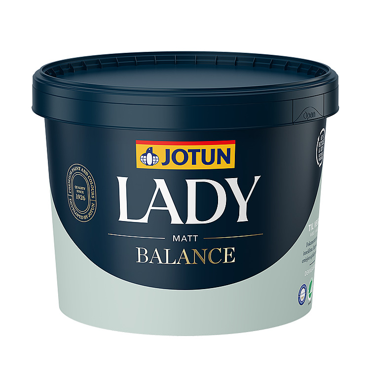 LADY Balance base A, B, C og hvit Sist oppdatert 08 aug 2025 Strekkode (GTIN): 7029350244363,7029350244332,7029350244349,7029350244356,7029350224976,7029350224983,7029350224990,7029350225003,7029350224938,7029350224945,7029350224952,7029350224969,7029350225010,7029350225027,7029350225034,7029350225041,7029350224952,7029350225034,7029350224990,7029350224945,7029350224983,7029350225027,7029350224969,7029350225003,7029350224938,7029350224976,7029350225010 Type: Innendørsmaling Lisensnummer: 2096 0002 Miljømerke: Svanemerket Merkevare: Jotun Lady Merkevare nettside: https://www.jotun.com/no/no/decorative/interior/products?brands=lady&brands=LADY Lisensinnehaver: Jotun A/S Lisensinnehaver nettside: http://www.jotun.no/ Se også Svanemerkets krav til maling, beis og lakk