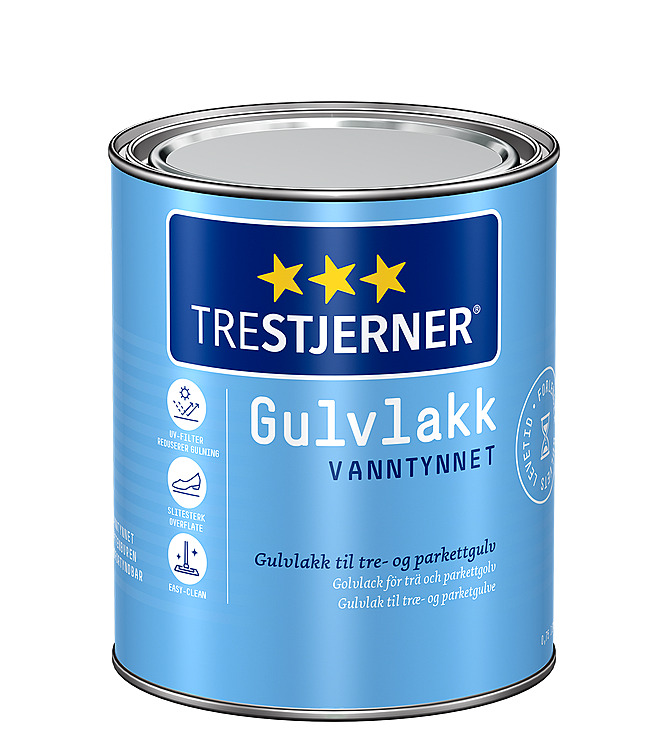 TRESTJERNER Gulvlakk Vanntynnet Sist oppdatert 22 okt 2025 Strekkode (GTIN): 7029350266099,7029350266082 7029350266112,7029350266105,7029350266136,7029350266129 Vis alle GTIN Vis færre GTIN Type: Innendørs lakk Lisensnummer: 2096 0002 Miljømerke: Svanemerket Merkevare: TreStjerner Lisensinnehaver: Jotun A/S Lisensinnehaver nettside: http://www.jotun.no/ Se også Svanemerkets krav til maling, beis og lakk