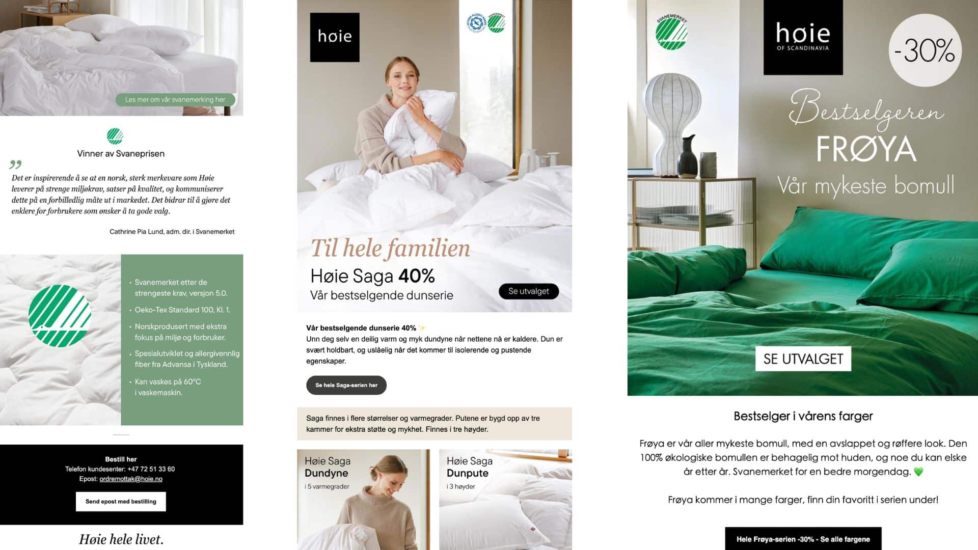 Høie kommuniserer tydelig om sitt miljøarbeid og legger stor vekt på svanemerking og betydningen av dette. Markedsføringen er kreativ og nytenkende for å nå ut til flest mulig, og de legger stor vekt på også å treffe nye og yngre målgrupper.
