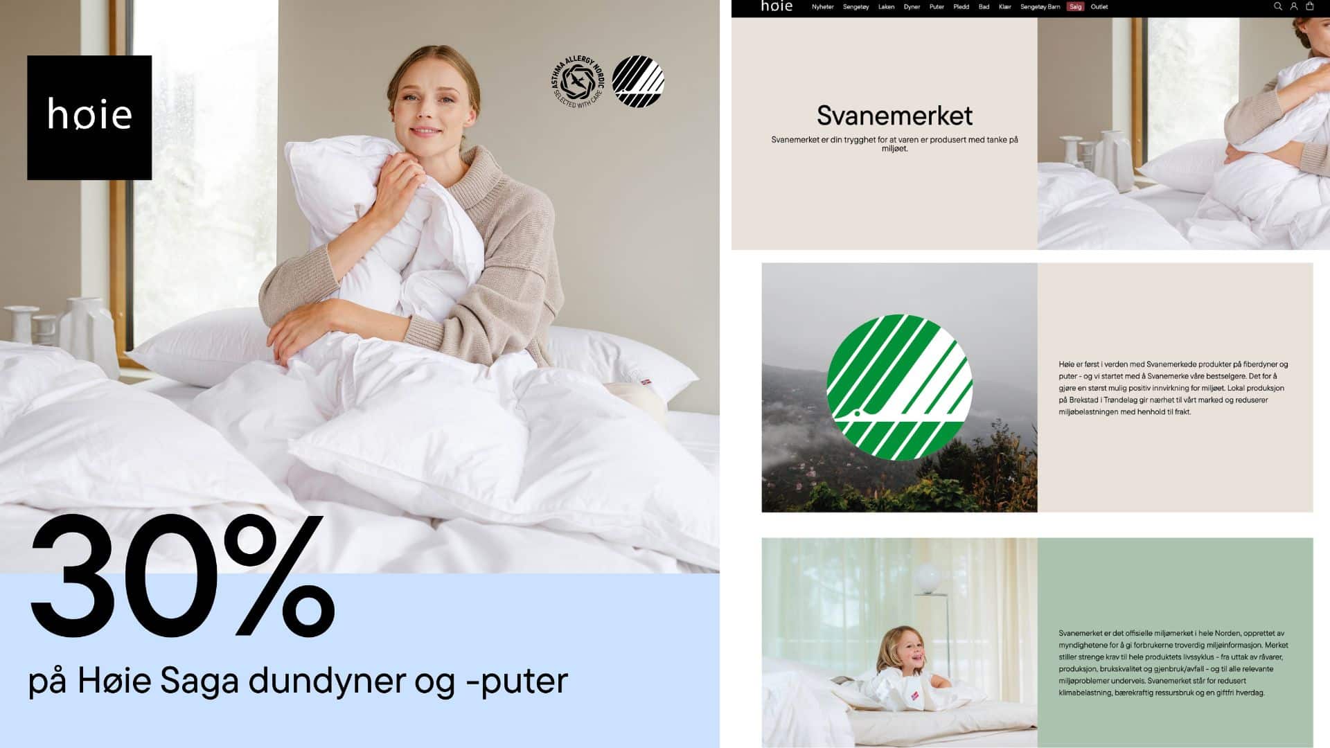 Når dynen, puten eller sengesettet er svanemerket, kan man være trygg på at produktene er produsert med minst mulig miljøbelastning.